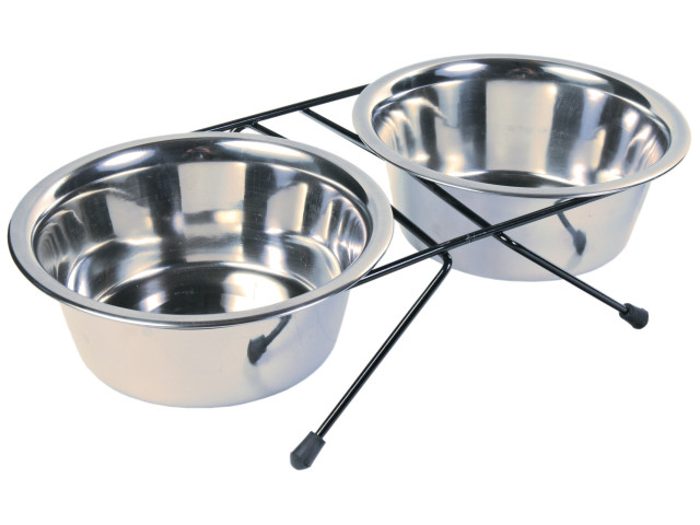 Trixie Set 2 Castroane Inox Cu Suport Metalic, 2×0.75 l/17 cm/33x8x19 cm, 24832