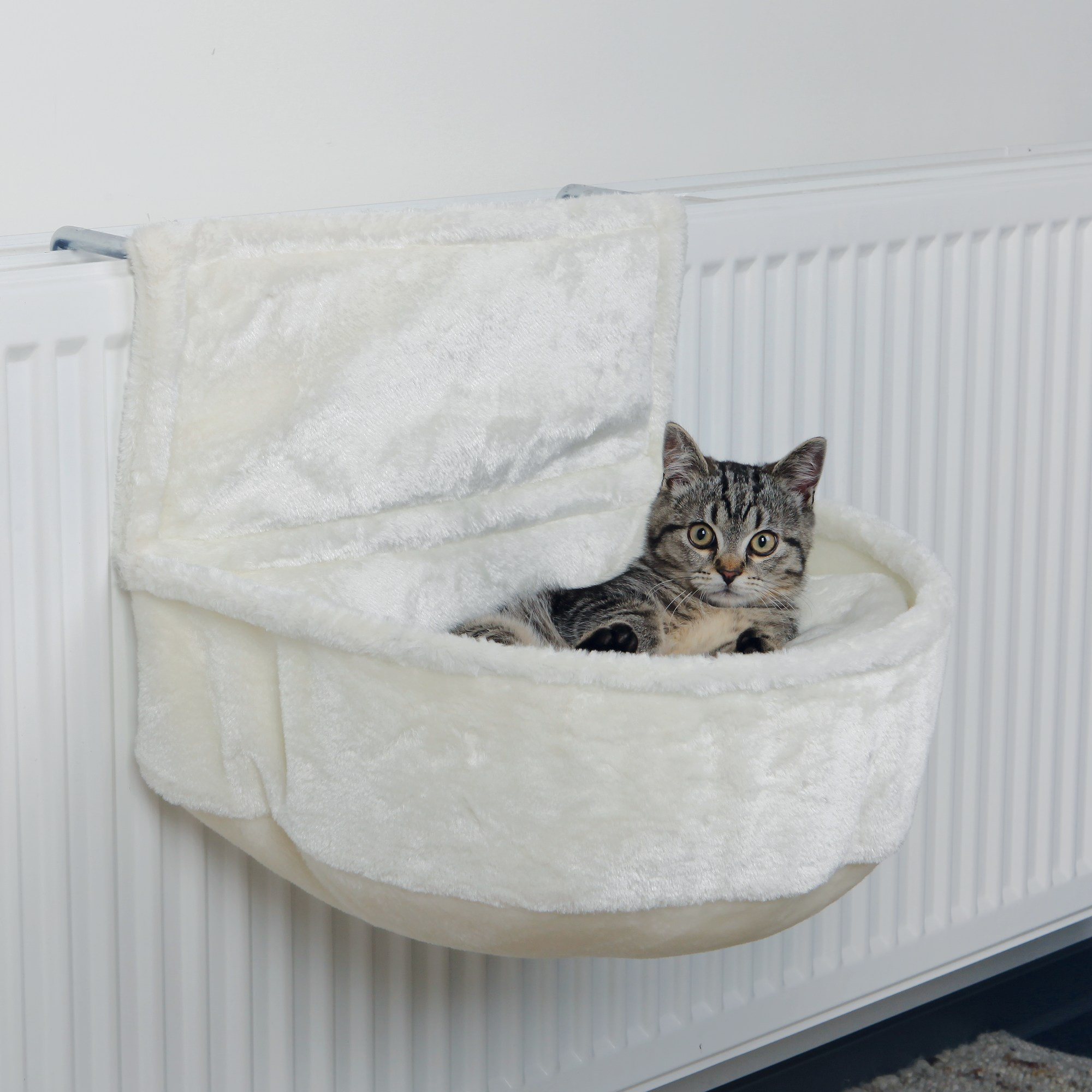 Acest pat de pisici pentru calorifer, de la TRIXIE, va fi un refugiu ideal pentru prietena dvs. felină! Culcușul pentru pisici are un înveliș moale de pluș, cu fire scurte, și o pernă reversibilă cu umplutură din fleece de poliester, ceea ce îl face confortabil și distractiv pentru pisica dvs. Patul de pisici are un cadru metalic robust și un suport reglabil, care se potrivește tuturor caloriferelor convenționale. Specificații Culoare: Alb Material: Textil și metal Dimensiuni: 45 x 13 x 33 cm (L x l x î) Cu o husă din pluș cu fir scurt Cu un suport reglabil (9-12 cm) Pentru toate caloriferele convenționale Cu o pernă detașabilă și reversibilă Material: Poliester: 100%