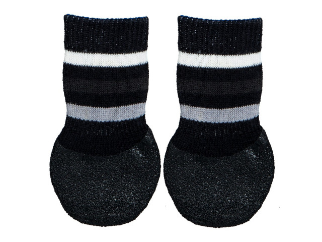 Informatii despre produs: – acoperire de cauciuc anti-alunecare integrala. – cu un strat de cauciuc anti-alunecare robust, pentru o prindere sigura chiar daca sosetele ar trebui sa alunece. – potrivit in special pentru cainii in varsta. – bumbac cu elastan/latex. – culoare: negru. Sosetele sunt potrivite pentru caini ca de ex.: Labrador Retriever