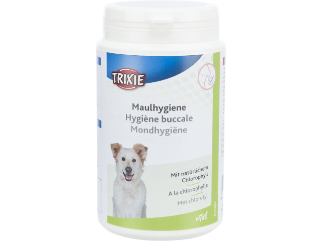 Supliment alimentar cu clorofila sub forma de tablete. Beneficii: – eficient impotriva respiratiei urat mirositoare. – ajuta la prevenirea formarii tartrului. Compozitie: lapte si produse lactate, lucerna, drojdie, subproduse vegetale (clorofila 8 %), carne si subproduse de origine animala, uleiuri si grasimi, alge (2 %), patrunjel, menta | A se pastra intr-un loc racoros si uscat. Componenta analitica Continut de grasime 4,2% Proteine 18,4% Cenusa bruta 5,1% Fibra bruta 1,4%