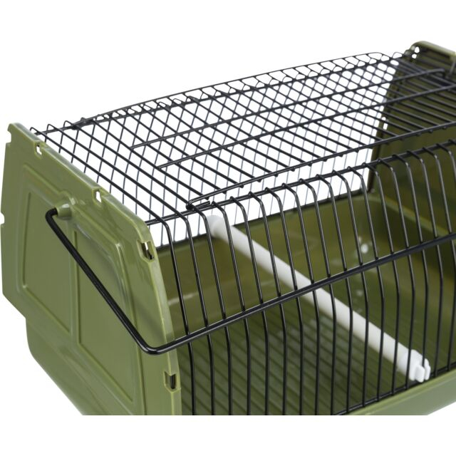 Transportator pentru pasari mici si animale mici. Material: plastic. Ideal pentru transportul animalului de companie la veterinar. Tip deschidere: in partea de sus. Cu maner si biban detasabil. Cu grilaj metalic, negru. Masuratori: 22x14x15 cm. Inaltime: 14 cm. Culoare: verde.