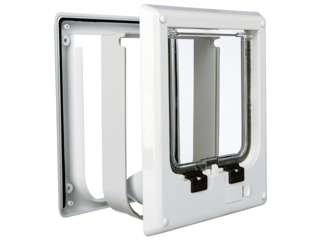 Usa batanta pentru pisici Trixie 4-Way, Electromagnetic Usita transparenta, silentioasa, cu siguranta. Clapa are incuietoare magnetica si sigiliu special si nu permite aparitia curentului de aer. Cu accesoriile suplimentare puteti prelungi tunelul pana la 34 mm. Fiecare parte suplimentara prelungeste tunelul cu pana la 25 mm, deoarece partile trebuie sa se suprapuna. Descriere pe scurt a clapetei de acces Trixie: Grosime de instalare 19 mm pana la 65 mm; Dimensiune totala 21 x 24.4 cm; Pentru toate felurile de usi si pereti; Fabricata din material plastic rezistent la apa; Sistem magnetic de inchidere, silentios; Siguranta; Cu electromagneti; Include doua parti tunel; Poate fi extinsa cu elementele tunel; Primul tunel extinde grosimea de instalare pana la 34 mm; Fiecare element tunel aditional extinde tunelul cu inca ca. 25 mm. 4 moduri de functionare: Doar intrare; Doar iesire; Intrare si iesire; Complet blocata. .