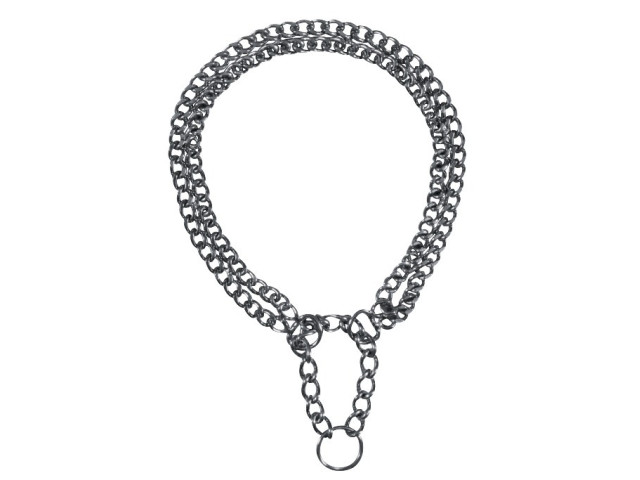 Zgarda semistrangulanta confectionata din crom. Zgarda semistrangulanta ajuta la reducerea tragerii cainelui in timpul mersului. Daca cainele trage mai tare de lesa, zgarda se va strange pana la punctul de oprire stabilit. Cand cainele se opreste din trasul lesei, zgarda se largeste din nou si devine confortabila pentru caini. Punctul de oprire sau nodul zgarzii este reglabil: inainte de utilizare, punctul trebuie setat astfel incat animalul de companie sa nu poata aluneca din zgarda si sa nu fie niciodata prea strans cand este tras.