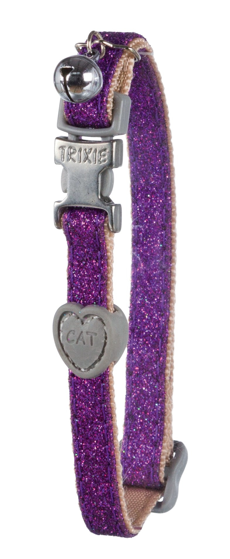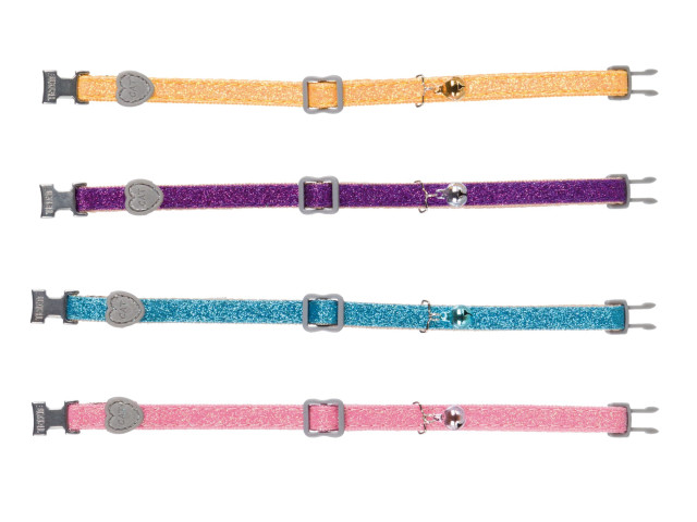 Zgarda ajustabila, cu clopotel. Catarama din metal/plastic. Diverse culori (roz, galben, mov, albastru), . Selectarea culorilor nu este posibila. Depinde de disponibilitatea stocului.
