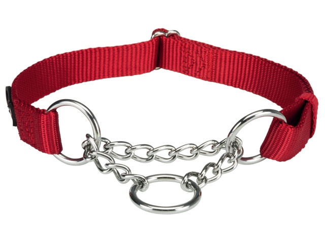 Zgarda, pentru caini, cu functie de oprire la tractiune. Lungimea curelei poate fi modificata si ajustata la circumferinta gatului cainelui. Material rezistent: poliester si metal. Cu inel pentru lesa. Usor de tras pe cap. Zgarda Semistrangulanta ajuta la reducerea tragerii cainelui in timpul mersului. Daca cainele trage mai tare de lesa, zgarda se va strange pana la punctul de oprire stabilit. Cand cainele se opreste din trasul lesei, zgarda se largeste din nou si devine confortabila pentru caini. Punctul de oprire sau nodul zgarzii este reglabil: inainte de utilizare, punctul trebuie setat astfel incat animalul de companie sa nu poata aluneca din zgarda si sa nu fie niciodata prea strans cand este tras. Zgarda pentru caini ajustabila. Material:Nylon Culoare: Rosu Masuratori: 45-70 cm/25 mm