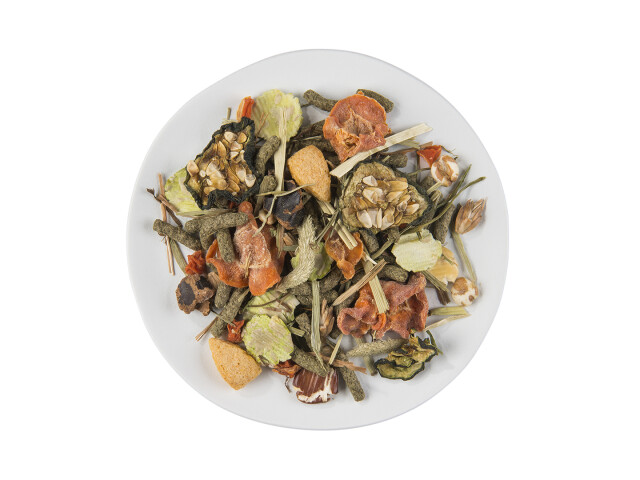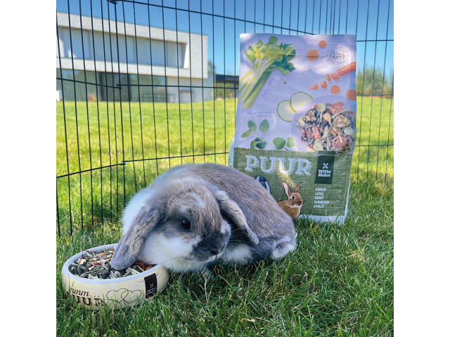Muesli gourmet pentru iepuri (pitici). Ingrediente gustoase si variate pentru un apetit excelent Compozitia echilibrata, bogata in fibre, adaosul de vitamine si oligoelemente vor creste vitalitatea animalului dvs. de companie Fibrele brute nemacinate si prebioticele promoveaza sanatatea dentara si o digestie sanatoasa PUUR contine tot ce are nevoie animalul tau de companie pentru o viata buna Fara conservanti artificiali, coloranti sau arome Muesli gourmet pentru iepuri (pitici). Continut: morcov / timoftica / telina / oregano / castraveti musli gurmand pur si variat // ingrediente speciale adaptate special pentru iepurele dumneavoastra (pitic) / fara conservanti artificiali, coloranti sau arome / toti nutrientii pentru o viata sanatoasa si fericita // placerea pura a aromele naturii Mod de administrare: Un iepure are nevoie de aproximativ 25 de grame de hrana pe kilogram de greutate corporala pe zi, in functie de stadiul vietii si starea de sanatate. Asigurati-va ca animalele mananca toate ingredientele. Oferiti intotdeauna acces nelimitat la fan si apa proaspata. A se pastra intr-un loc racoros si intunecat.