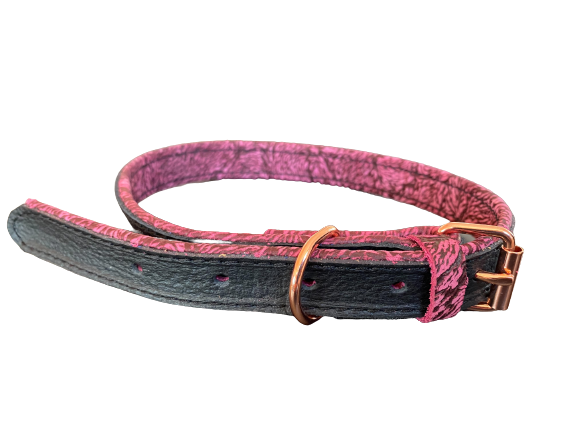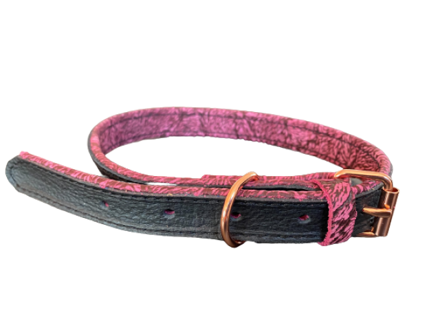 Zgarda Monserra Piele Naturala, Negru/Roz, 20 mm x 45 cm
